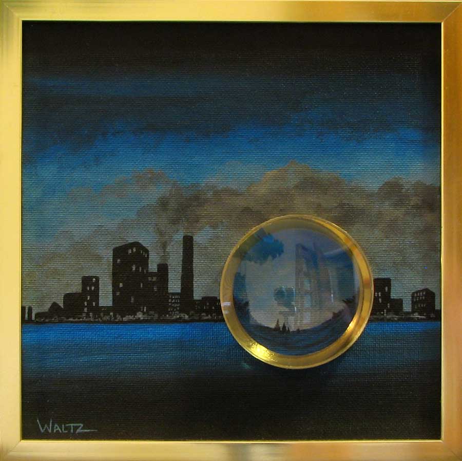 The Pursuit Of Pristine Places Mixed media on canvas, metal frame 8 x 8” (20.32 x 20.32cm) $250 for original art Prints available here