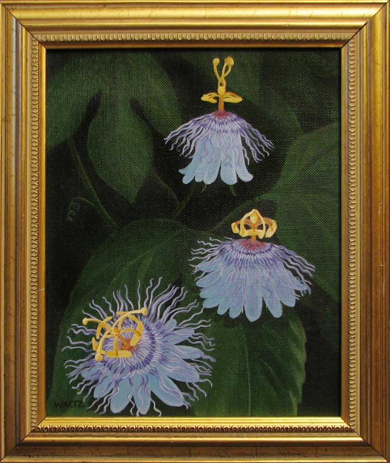 Partita (Passion Flowers) Acrylic paint on canvas, framed 8 x 10” (20.32 x 25.40cm) Original art not for sale Prints available here