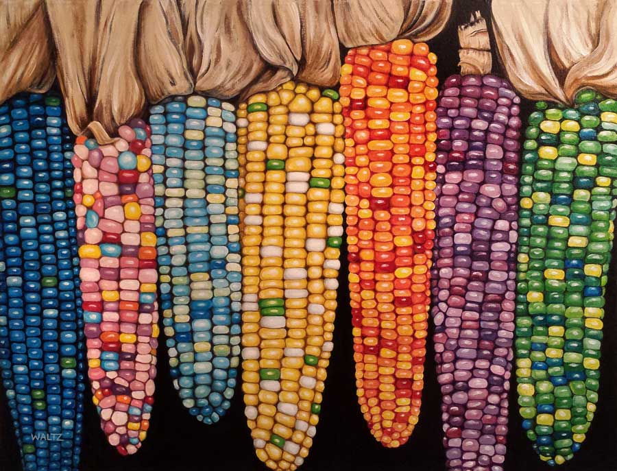 Zea Mays, Glass Gem Corn Acrylic paint on canvas, painted edges 28 x 22” (71.12 x 55.88cm) $1230 for original art Prints available here