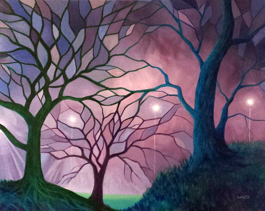 Esoteric Reflections Acrylic paint on canvas, framed 20 x 16” (50.80 x 40.64cm) $425 for original art Prints available here